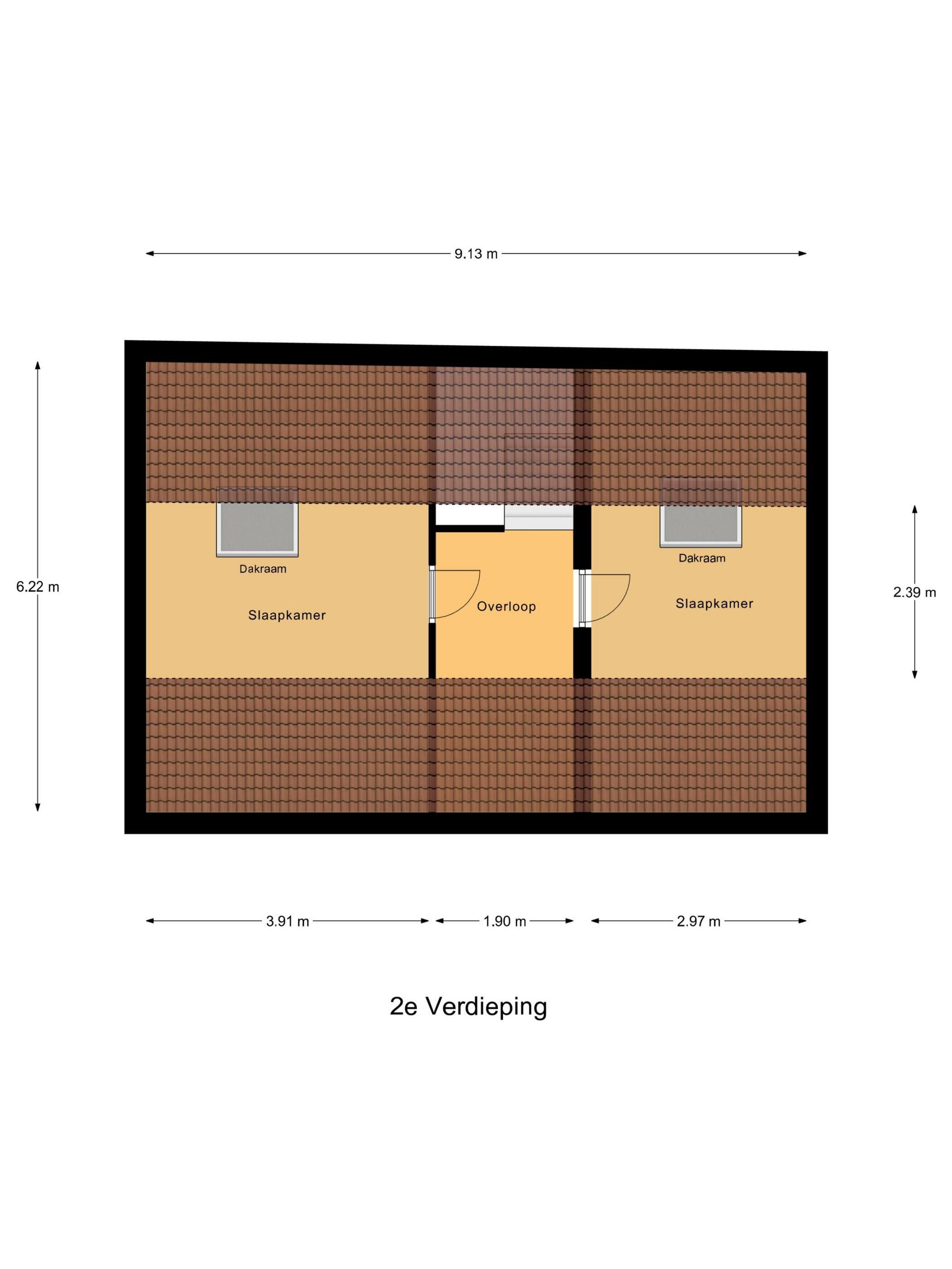 Overloop met toegang tot twee extra slaapkamers met dakramen.