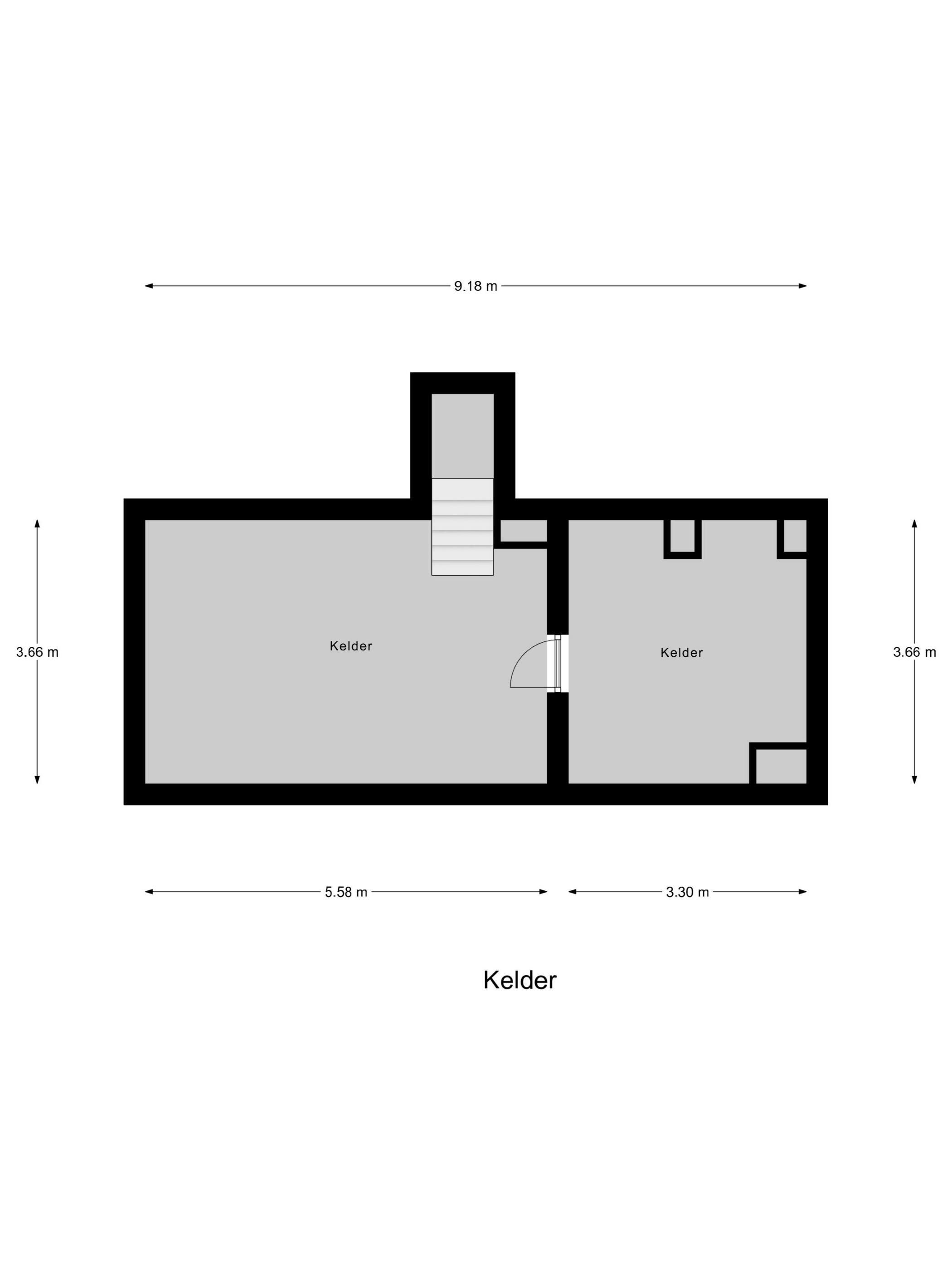 Praktische provisiekelder van circa 34 m² (overige inpandige ruimte), verdeeld over twee compartimenten – ideaal als opslag, hobbyruimte of wasruimte.